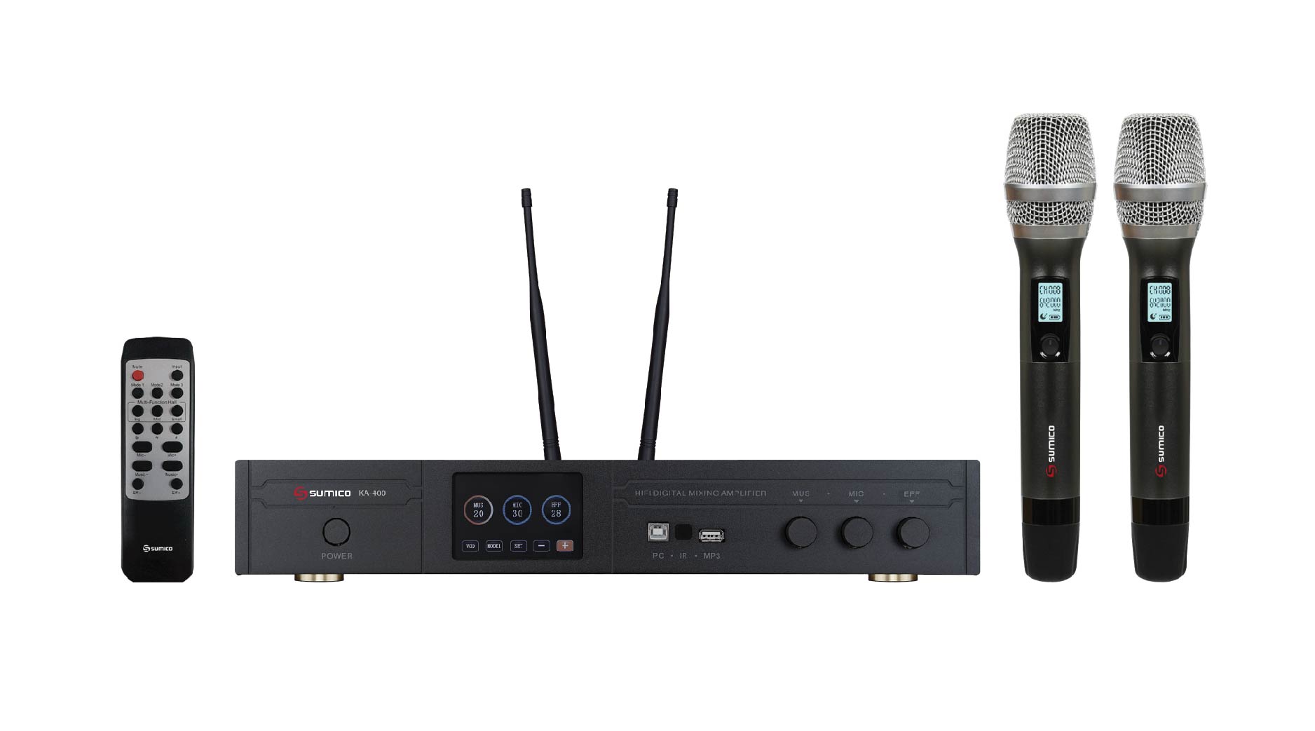 Ampli Karaoke Kèm Micro Sumico KA400 (400W x 2 Kênh, 2x 6.3mm, Bluetooth 5.0, Optical, Kèm 2 Micro không dây)