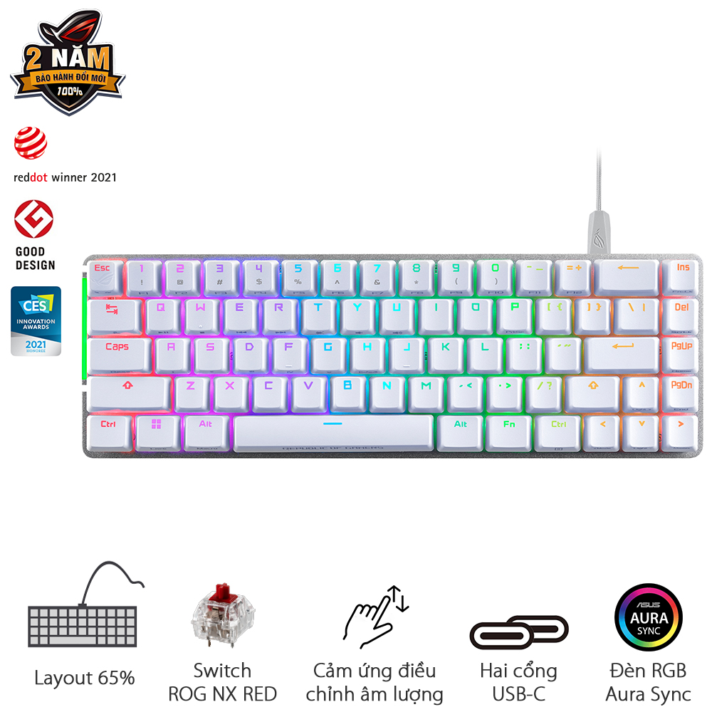 Bàn phím cơ 65% Asus ROG Falchion Ace White (NX Red Switch)