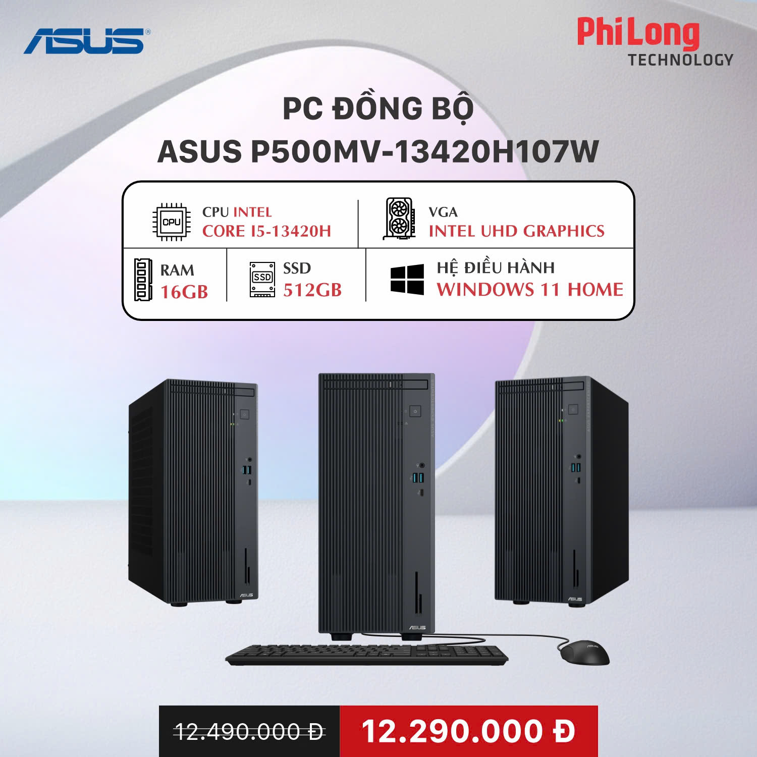 Máy Tính Để Bàn PC Đồng Bộ ASUS P500MV-13420H107W (Intel Core i5-13420H, RAM 16GB, SSD 512GB, Intel UHD Graphics, Bộ Nguồn 180W, Windows 11 Home, Kèm Phím Chuột)