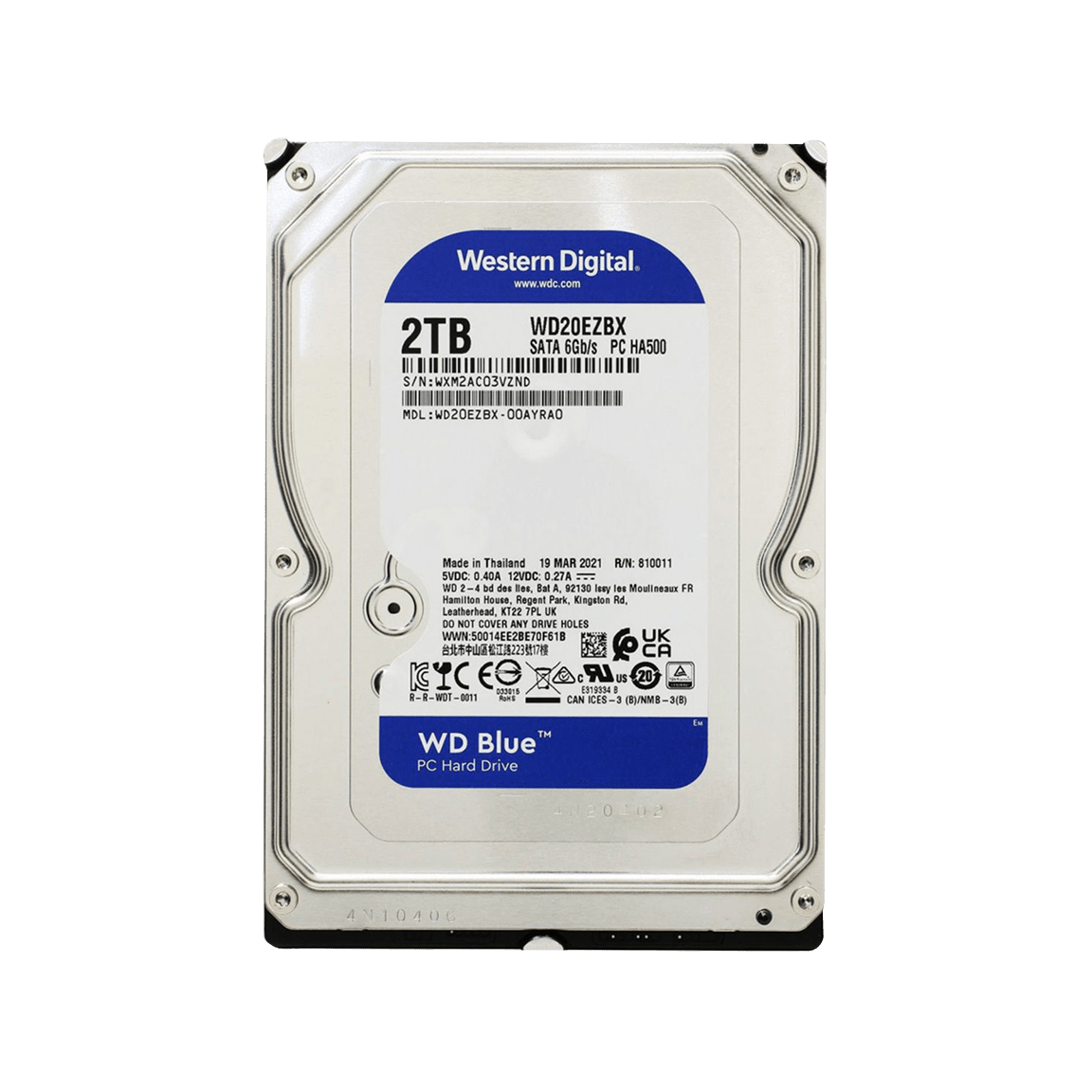 Ổ cứng gắn trong HDD WD 2TB Blue 3.5 inch, SATA 6Gb/s, 256MB Cache, 7200RPM (WD20EZBX)