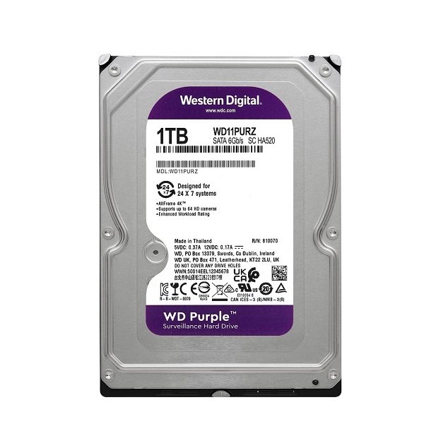 Ổ cứng gắn trong HDD WD Purple 1TB 3.5 inch, 5400RPM, SATA 6Gb/s, 64MB Cache (WD11PURZ)