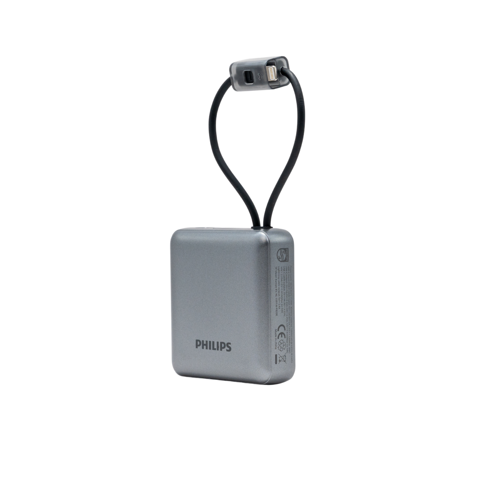 Pin Sạc Dự Phòng Nhỏ Gọn 10.000mAh Philips DLP2713NW Black Grey (Kèm cáp Type-C và Lightning)
